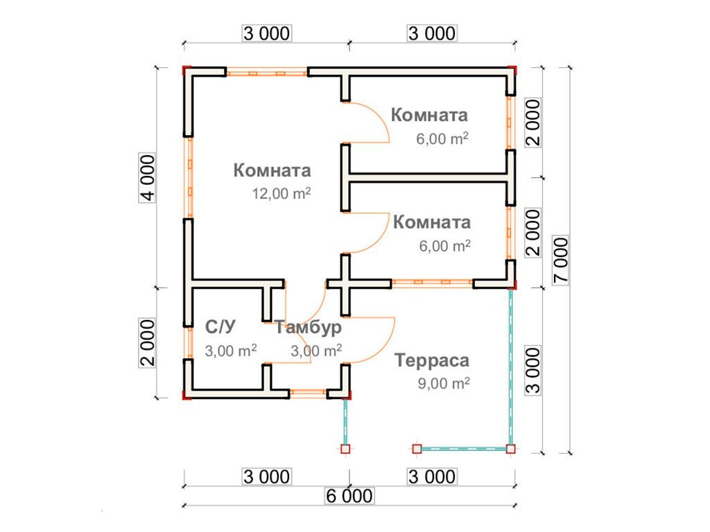 Проект двухэтажного дома возможно возведение из материалов: газобетон, керамический блок или по каркасной технологии, размеры строения 6 x 7 метров и имеет площадь 41 квадратных метра, спроектирован для комфортного размещения семей с детьми, родственниками или друзьями.