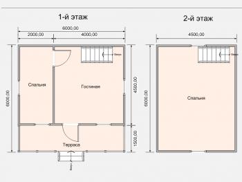 Проект двухэтажного дома возможно возведение из материалов: газобетон, керамический блок или по каркасной технологии, размеры строения 6 x 6 метров и имеет площадь 63 квадратных метра, спроектирован для комфортного размещения семей с детьми, родственниками или друзьями.